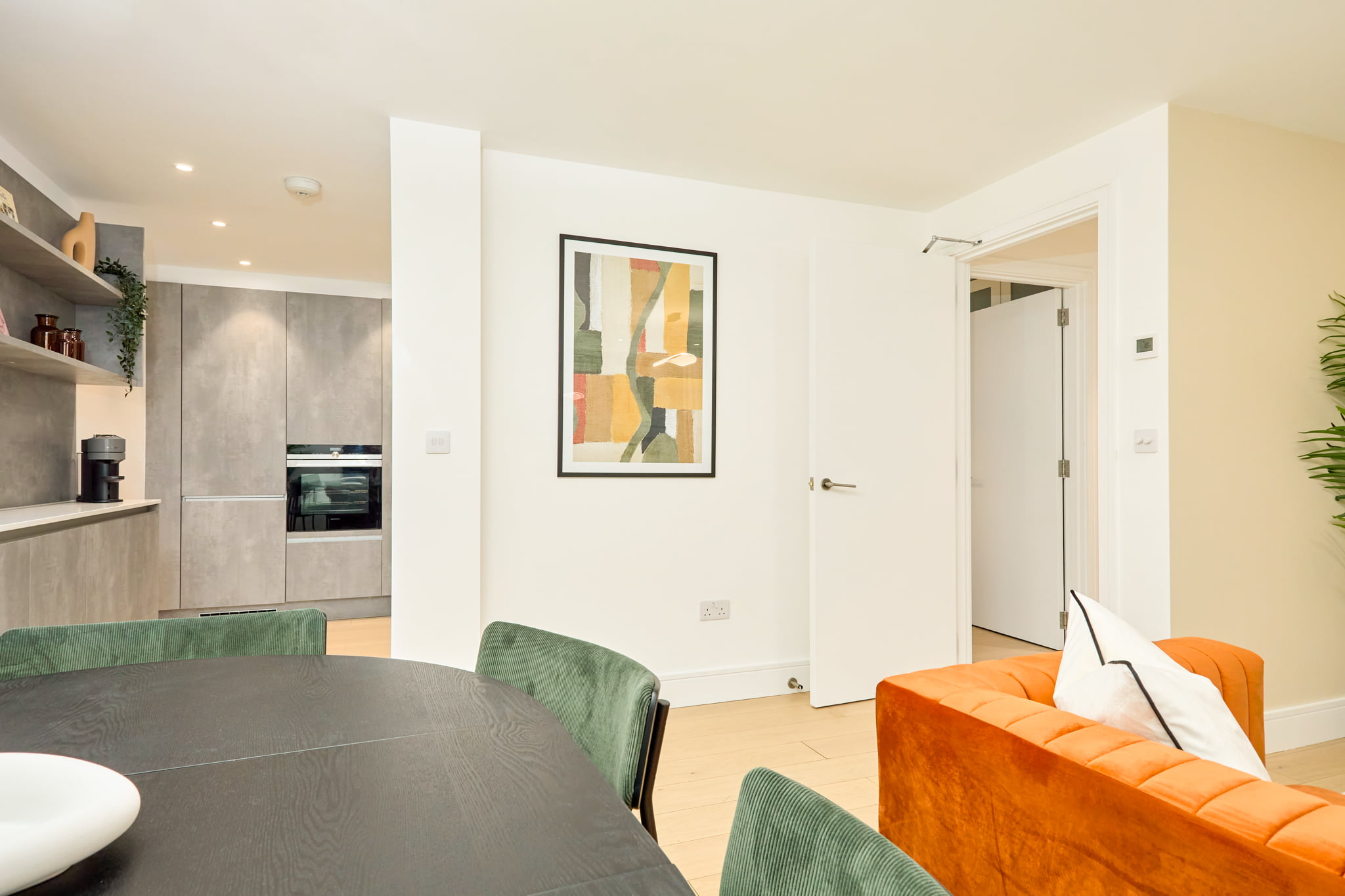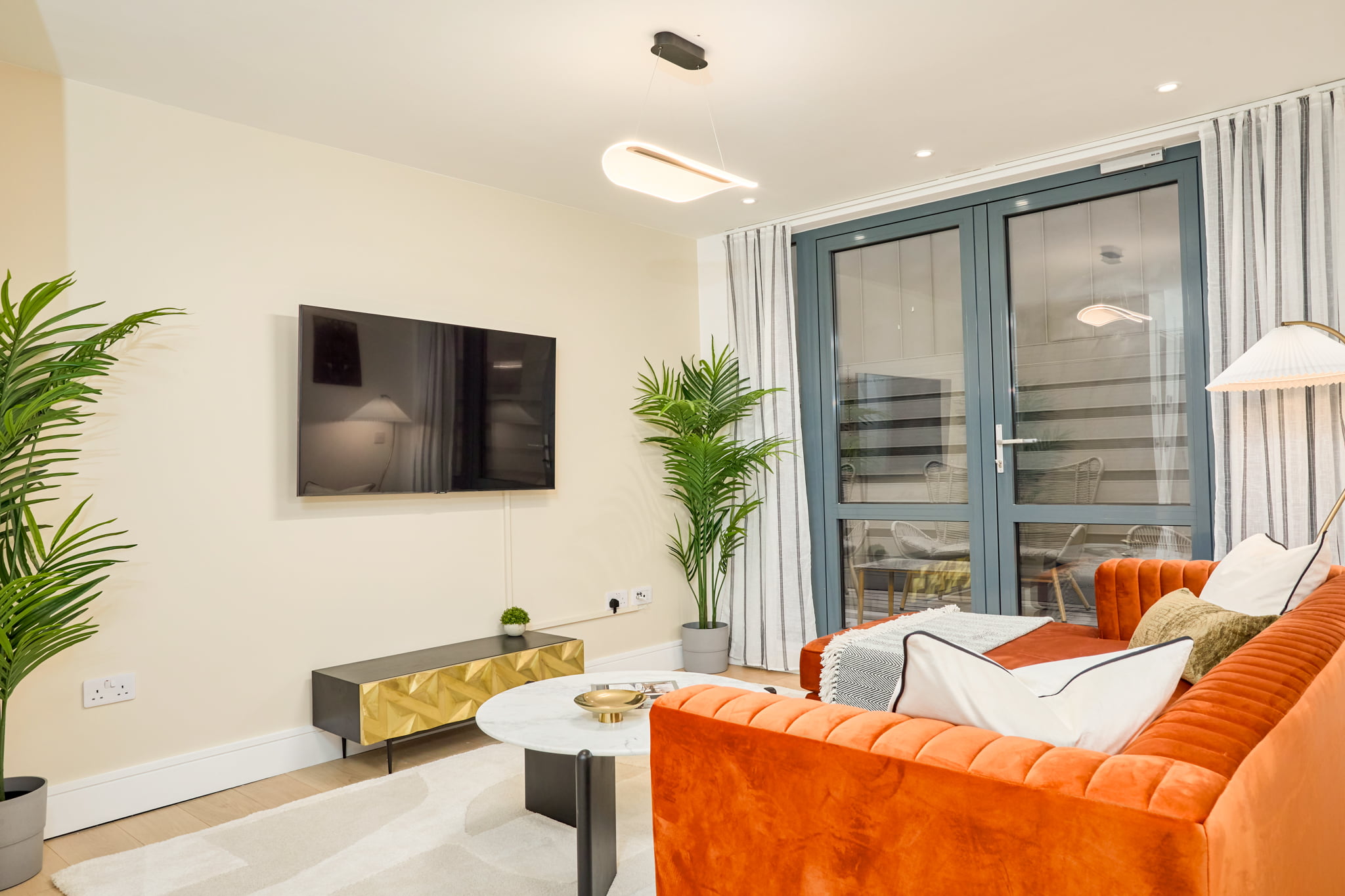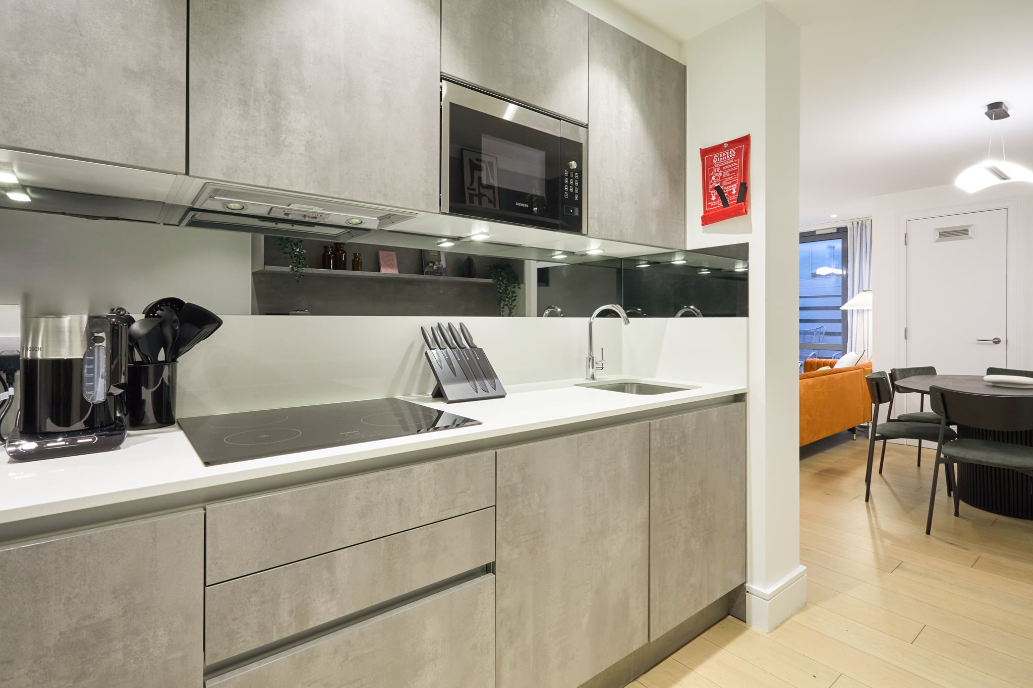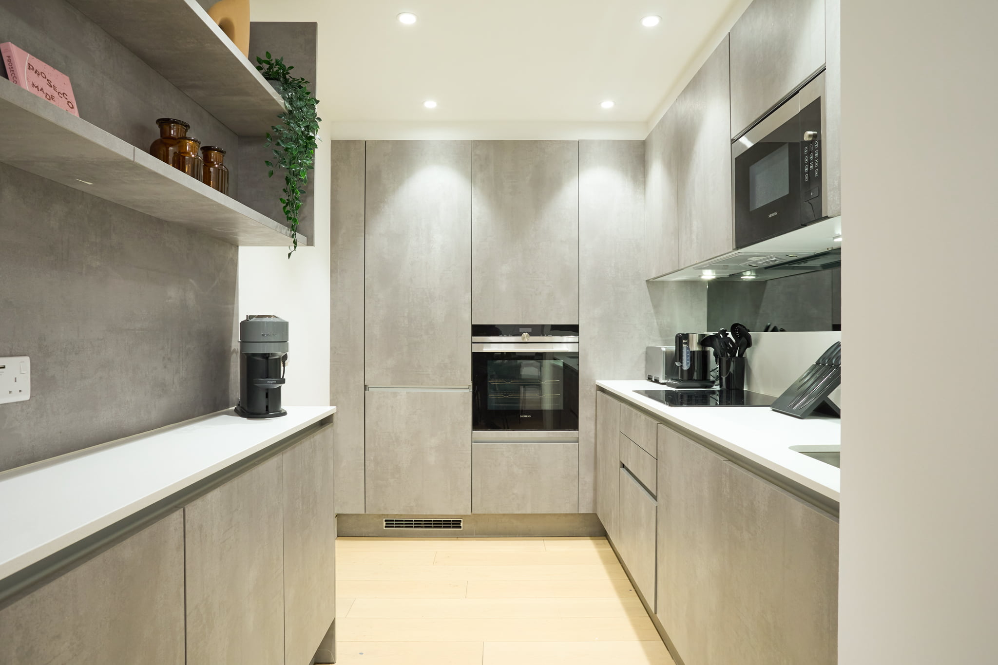 This newly refurbished apartment is situated on the third floor of a modern residential development, the interior has been decorated to a beautiful standard with stylish furnishings. The living area boasts a large comfy sofa with chaise-lounge and smart TV, alongside a fully-fitted kitchen with Siemens appliances and Nespresso coffee machine. The three bedrooms are fitted with king-size beds, the master bedroom has both an ensuite and balcony access. This property also offers a bath, underfloor heating and hardwood floors.
