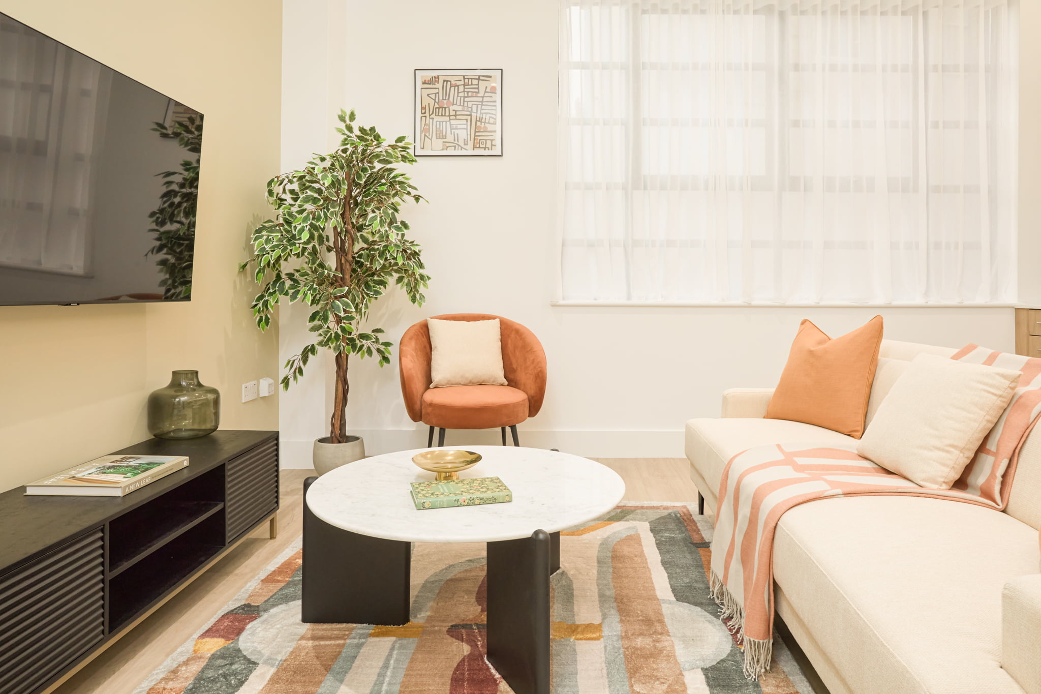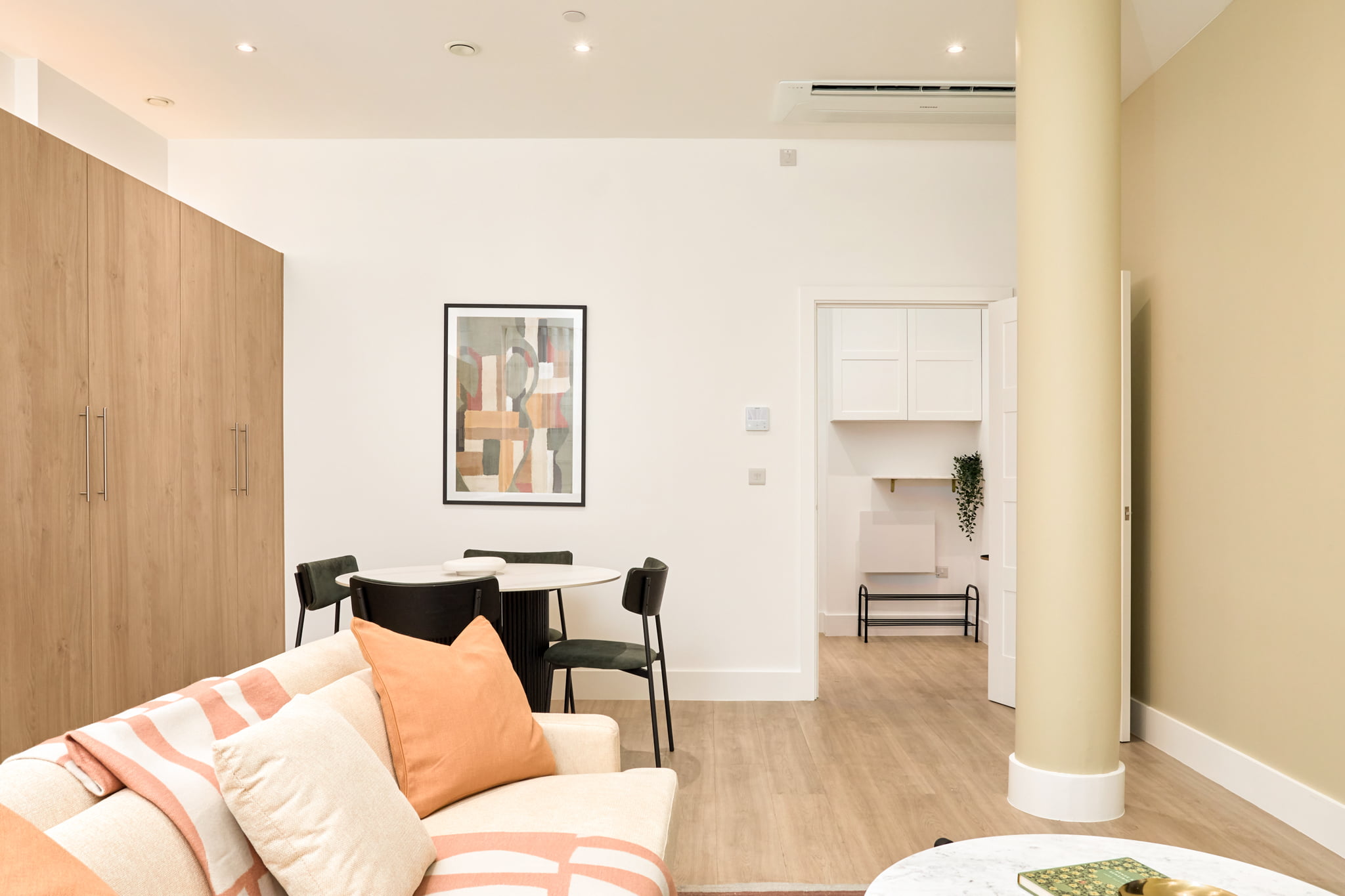 A spacious ground floor apartment in Marylebone with stylish interior design and homely atmosphere.
