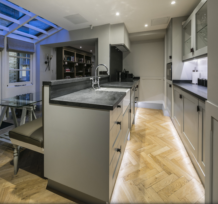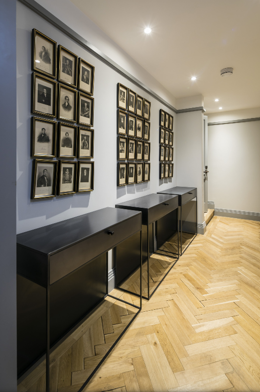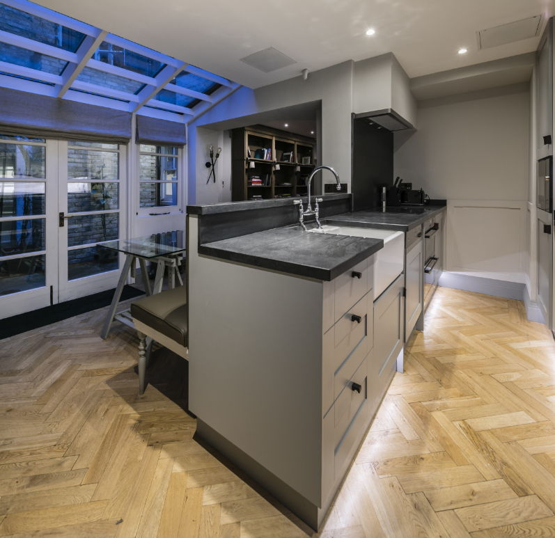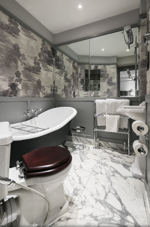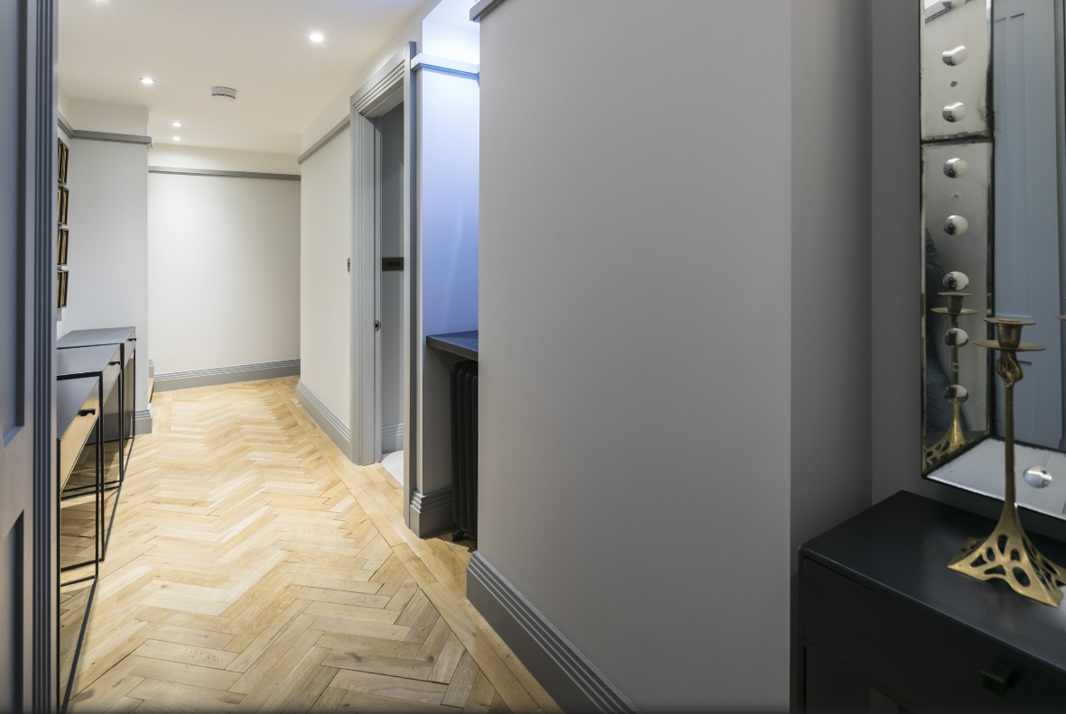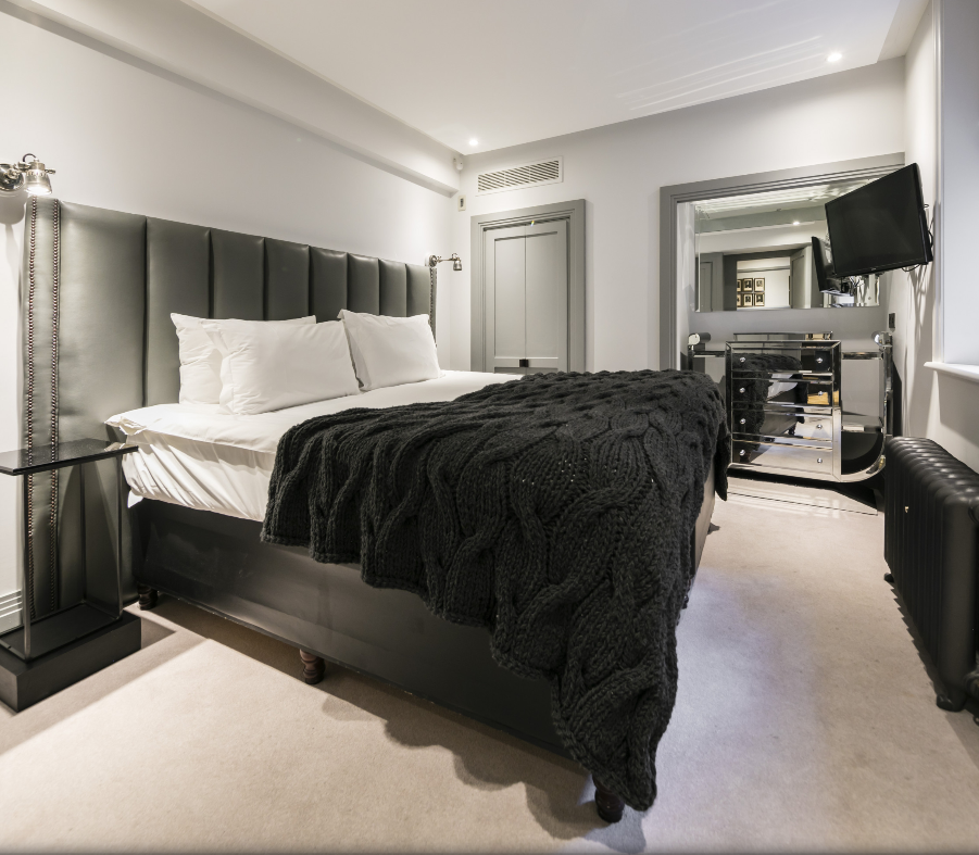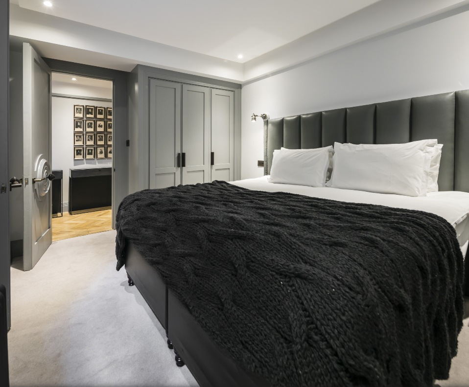 Welcome to The Hannover Suite, a luxury one-bedroom apartment in Central London, nestled near the bustling Oxford Street. This premium serviced apartment is a true gem, located on the lower ground-basement level towards the rear of the building, offering a serene escape in the heart of the city. The apartment showcases a large, light-filled living space adorned with an antique bookcase and an ornamental fireplace, creating a blend of elegance and comfort. Sunlight streams in through the conservatory, leading to a patio that extends from the fully fitted kitchen, equipped with modern conveniences such as a fridge/freezer, dishwasher, and coffee machine. The dining area, perfect for four, adds to the apartment’s charm.