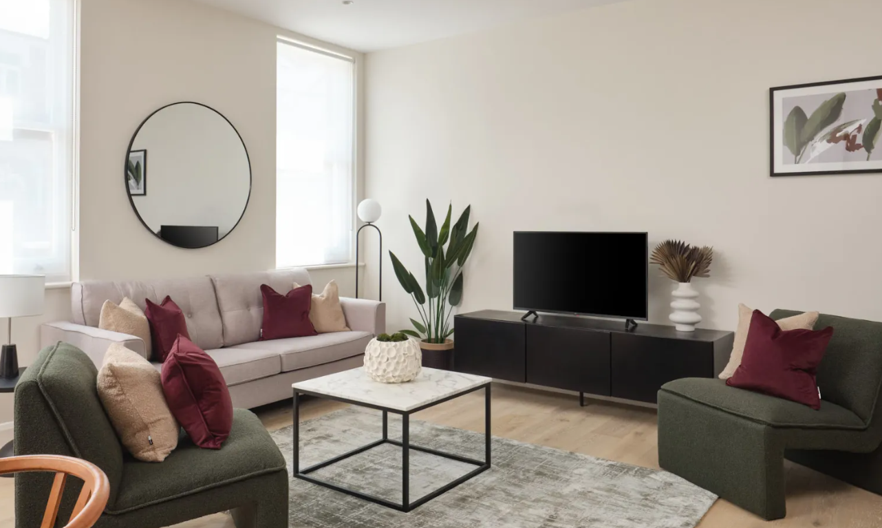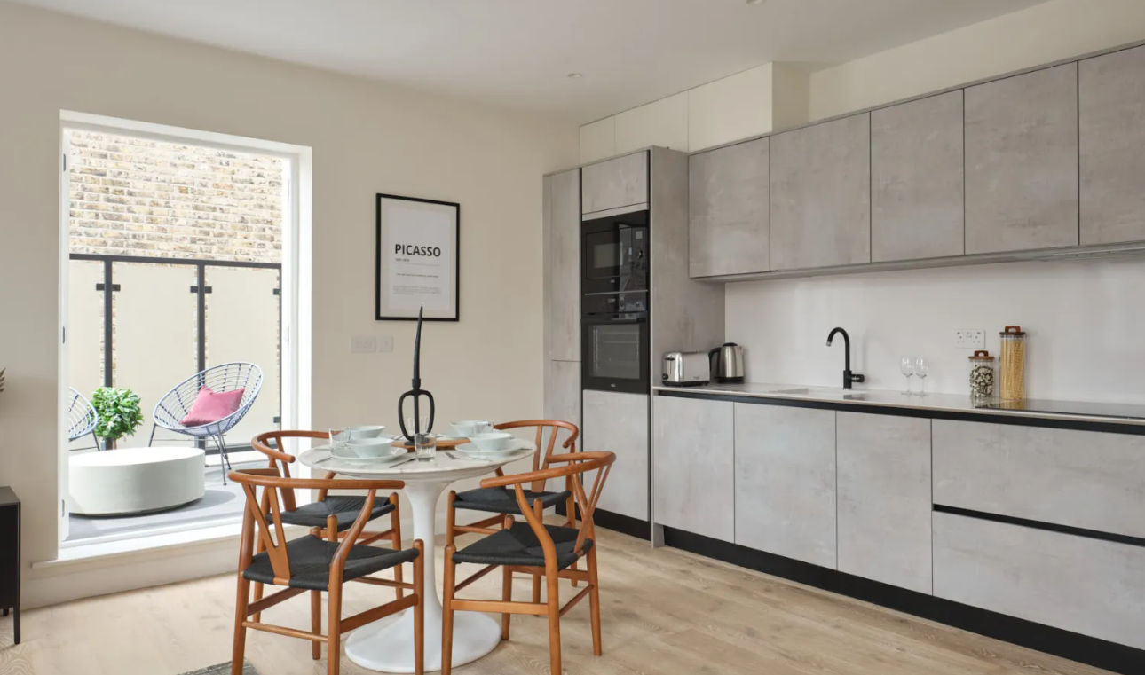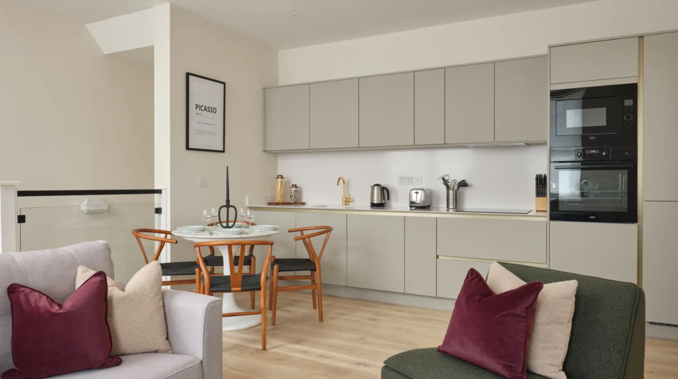Located in a handsome red-brick building in the heart of Fulham, the modern interiors and quality finish of these two- and three-bedroom serviced apartments bring a touch of luxury to your stay. At every turn, there are considered design details and high-spec finishes, such as soft carpets and engineered hardwood floors, modern fixtures throughout and the bonus of underfloor heating. The apartments have been meticulously built to celebrate open plan living and provide you with everything you need while away from home. Spacious areas in which to dine, work and unwind are bathed in natural light. The elegant and contemporary kitchens are fully equipped with an oven and induction hob, microwave, integrated fridge/freezer, dishwasher and washer/dryer. Bathrooms are modern and attractively designed, while the light bedrooms feature high-quality beds and ample storage.
