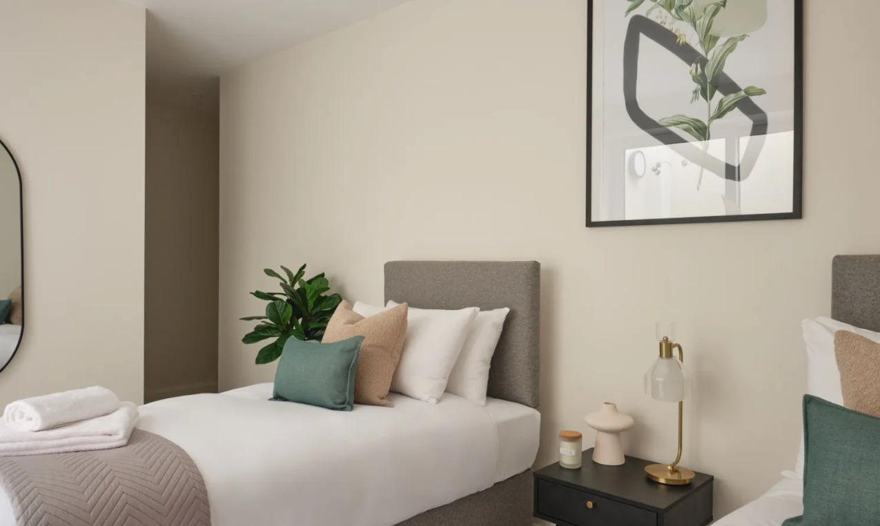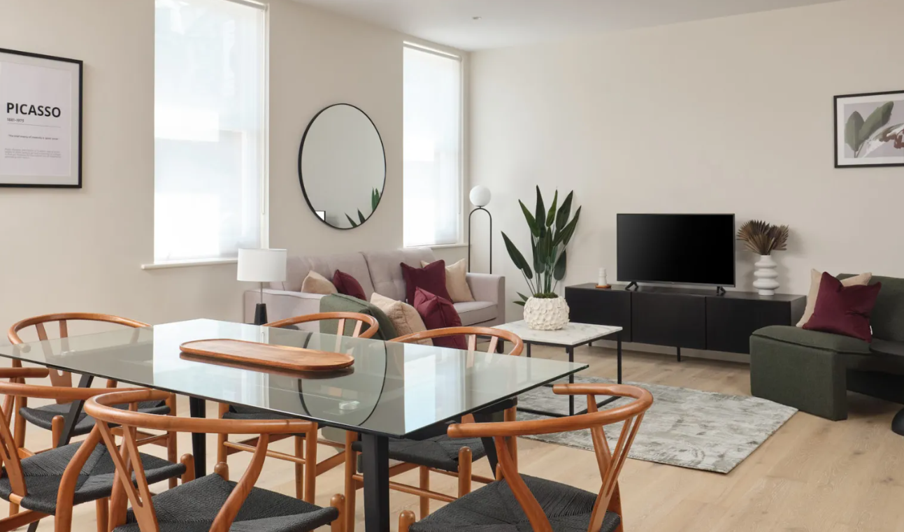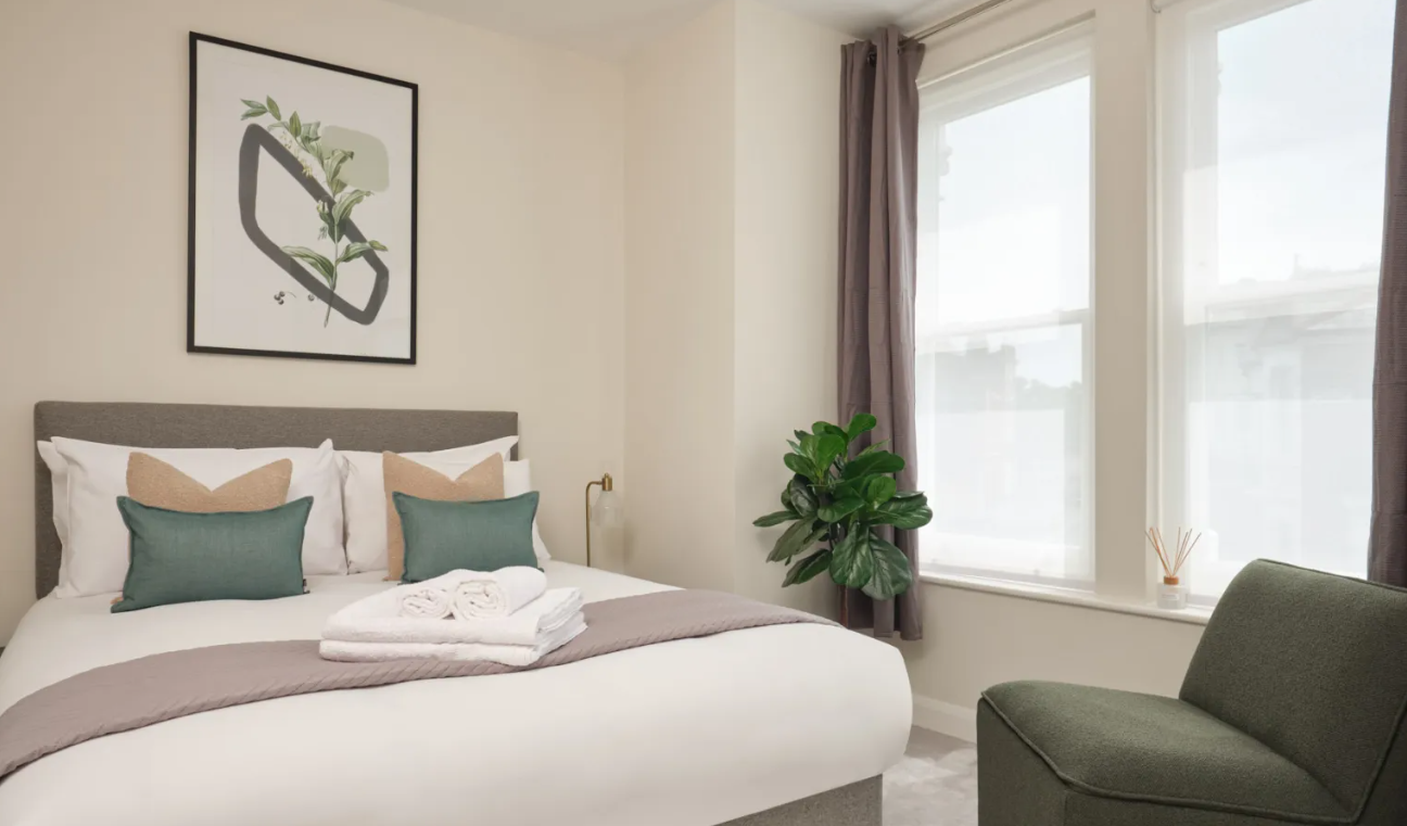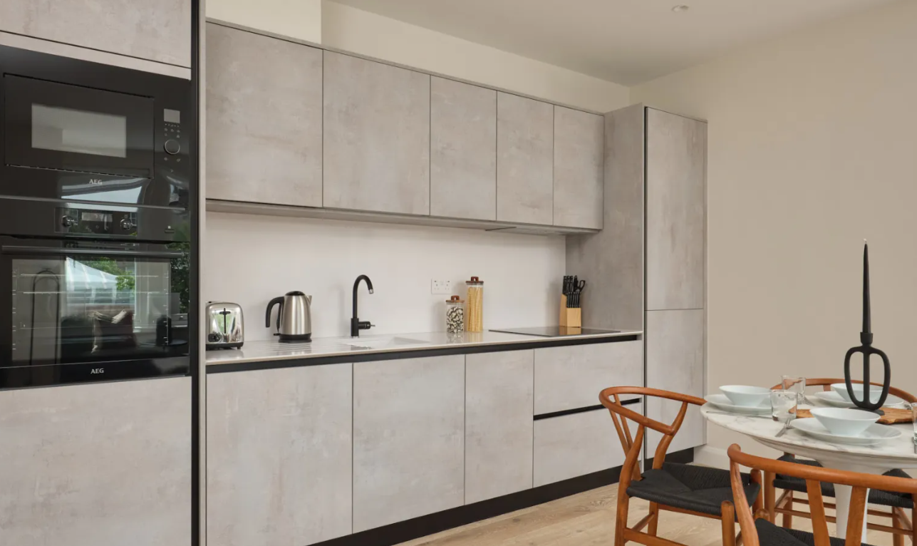 Located in a handsome red-brick building in the heart of Fulham, the modern interiors and quality finish of these two- and three-bedroom serviced apartments bring a touch of luxury to your stay. At every turn, there are considered design details and high-spec finishes, such as soft carpets and engineered hardwood floors, modern fixtures throughout and the bonus of underfloor heating. The apartments have been meticulously built to celebrate open plan living and provide you with everything you need while away from home. Spacious areas in which to dine, work and unwind are bathed in natural light. The elegant and contemporary kitchens are fully equipped with an oven and induction hob, microwave, integrated fridge/freezer, dishwasher and washer/dryer. Bathrooms are modern and attractively designed, while the light bedrooms feature high-quality beds and ample storage.