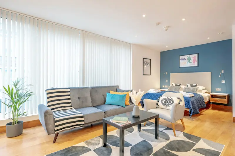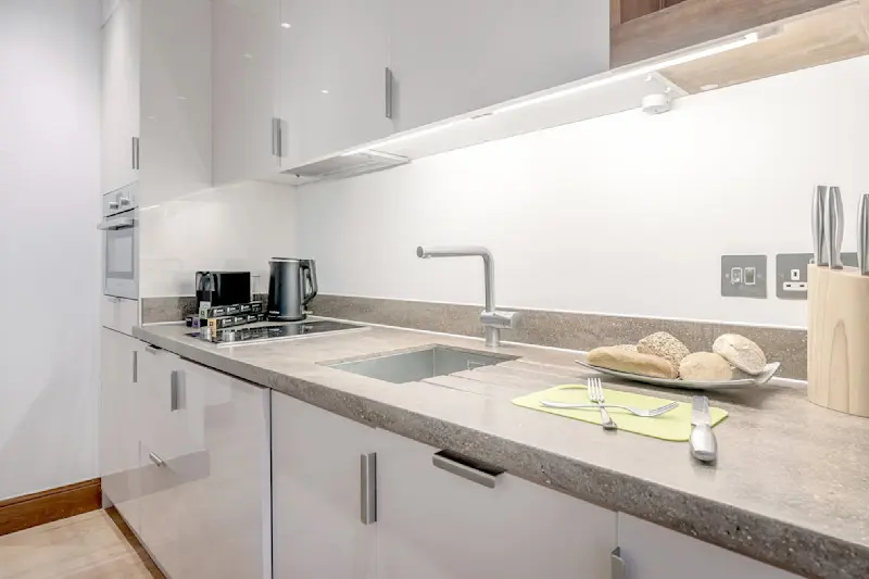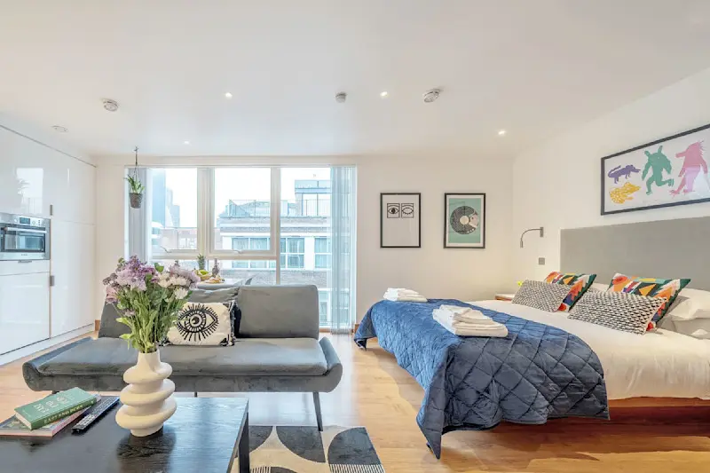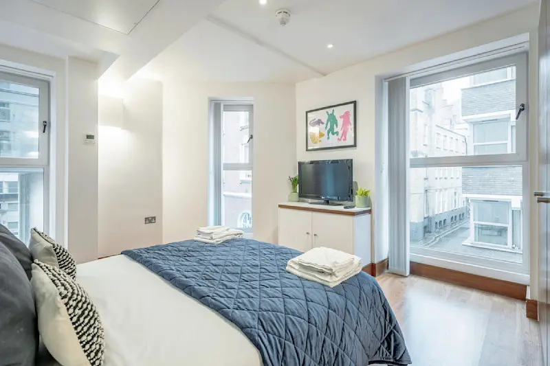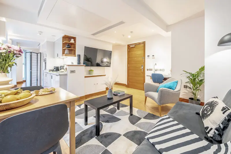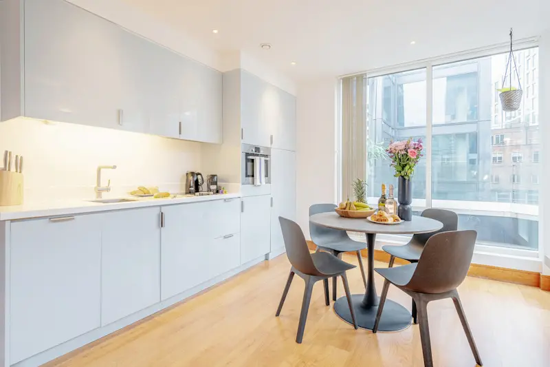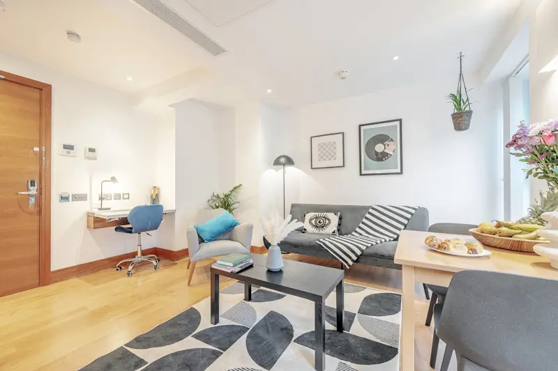 Welcome to our stylish serviced apartments right in the heart of London’s historic centre. It’s a mere 5-minute walk from the iconic Tower of London. Our apartments are meticulously crafted to meet the needs of both business and leisure travellers. Think contemporary elegance meets business chic. The bedrooms are spacious, decked out with plush king-size beds, promising a restful night’s sleep. When it comes to the living and kitchen area, we’ve got you covered. If you’re all about that hustle, our fully equipped kitchen and desks are ready for your productivity game with High-Speed Wi-Fi.