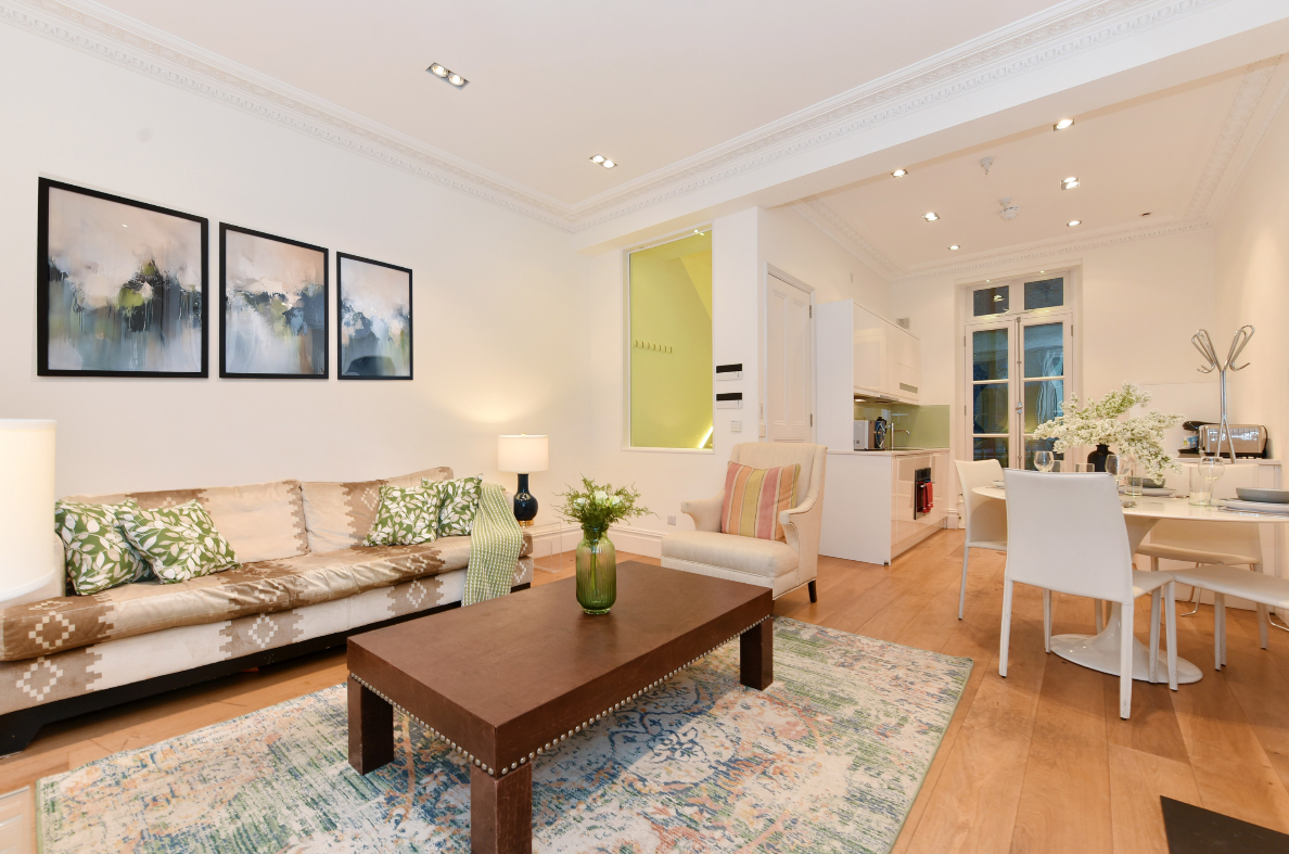 Welcome to your luxurious two-bedroom, two-bathroom duplex apartment in the heart of Knightsbridge, one of London’s most exclusive neighbourhoods. Situated on Beauchamp Place, just a 4-minute walk from Harrods and the designer boutiques of Sloane Street, this spacious 100 sqm (1076 sq ft) home offers the perfect blend of elegance, comfort, and convenience. Whether you’re visiting for business or leisure, you’ll be perfectly placed to explore London’s best shopping, dining, and cultural attractions. Stroll to Hyde Park (10 minutes) for a morning walk, explore the Victoria & Albert, Science, and Natural History Museums, or enjoy world-class dining at the many nearby restaurants. With Knightsbridge and South Kensington Underground stations just minutes away, getting around the city is effortless.