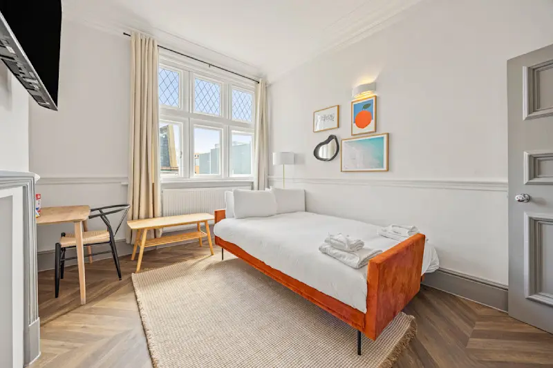 Welcome to Kula Sussex Mansions, a collection of 13 exclusive serviced apartments located in the vibrant heart of Covent Garden. Built between 1886 and 1888 as residential chambers, this iconic Victorian building showcases its rich heritage through original stained windows, striking red brickwork, and elegant Gothic-inspired detailing. At Kula, we’ve carefully reimagined these historic spaces, combining timeless charm with modern comforts. Each apartment offers a serene escape from the city’s hustle, while our signature Kula touch ensures you feel right at home in the heart of London’s cultural district.