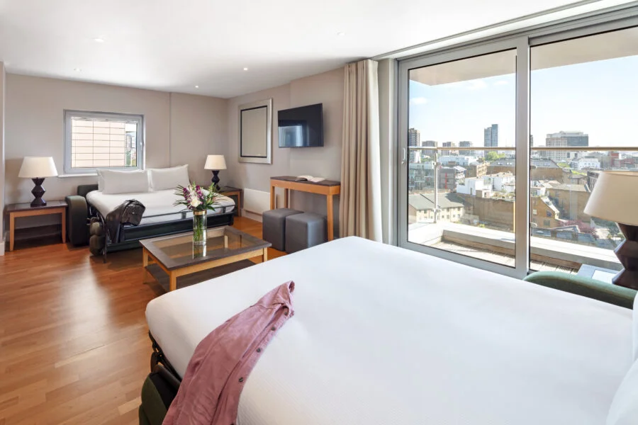 Our spacious Aldgate serviced apartments near Tower Bridge are located in the heart of this historic part of the capital. Situated within walking distance of some of London’s most famous attractions, Marlin’s serviced apartments in Aldgate Tower Bridge offer the perfect base for exploring the capital. Tourist hotspots like Brick Lane, the Tower of London and artsy Hoxton are just a short stroll away. However, we can cater for your business travel needs too. We’re experts in corporate accommodation and our serviced apartments in London provide a central base for your working trip. Read on to learn more about our unrivalled location, facilities, and information about our Tower Bridge serviced apartments. We have a selection of serviced apartments in Aldgate to choose from, including One and Two Bedroom apartments as well as Two Bedroom Penthouse apartments with panoramic views across the city.