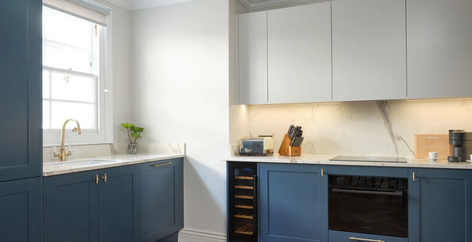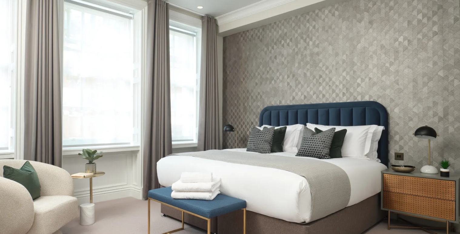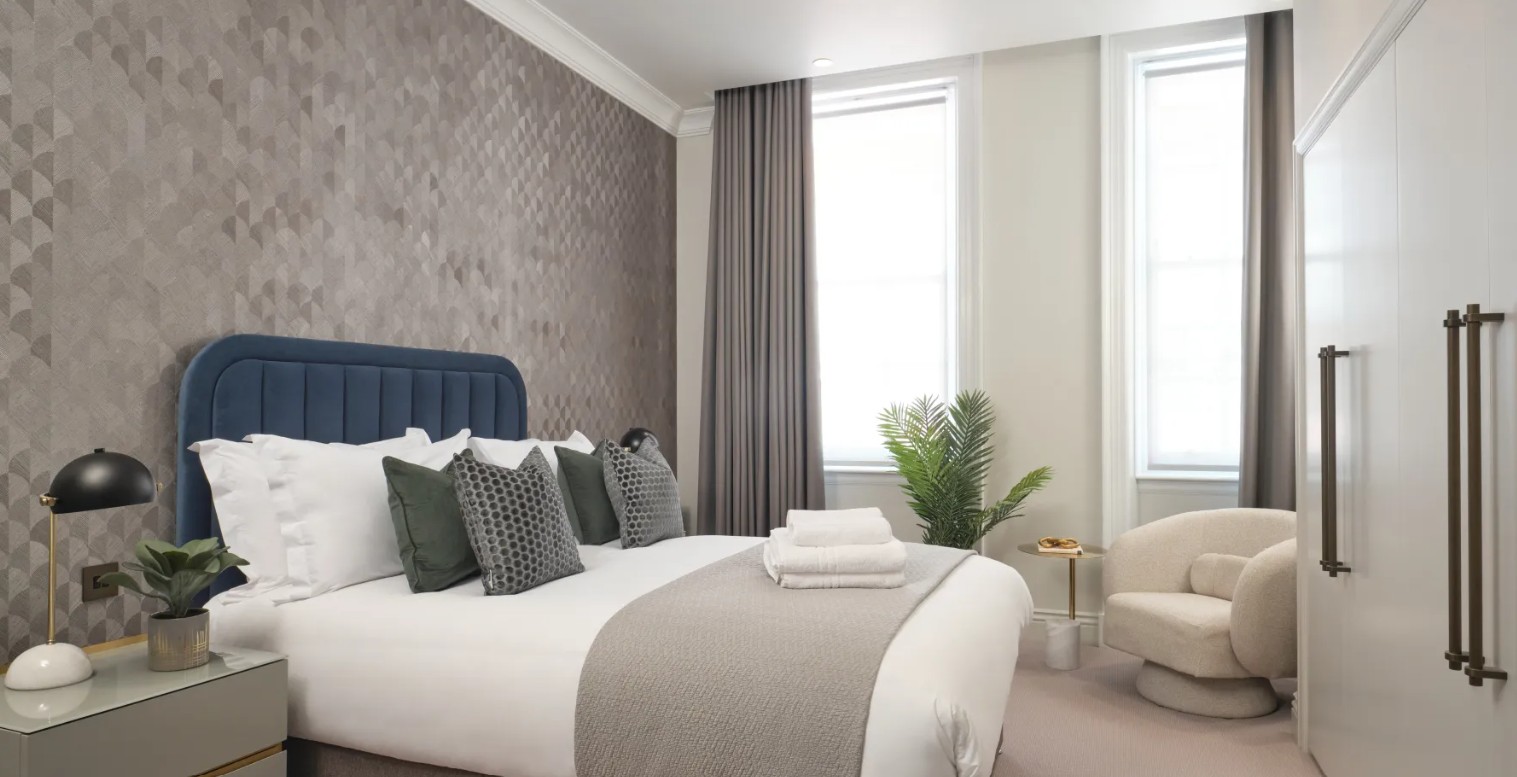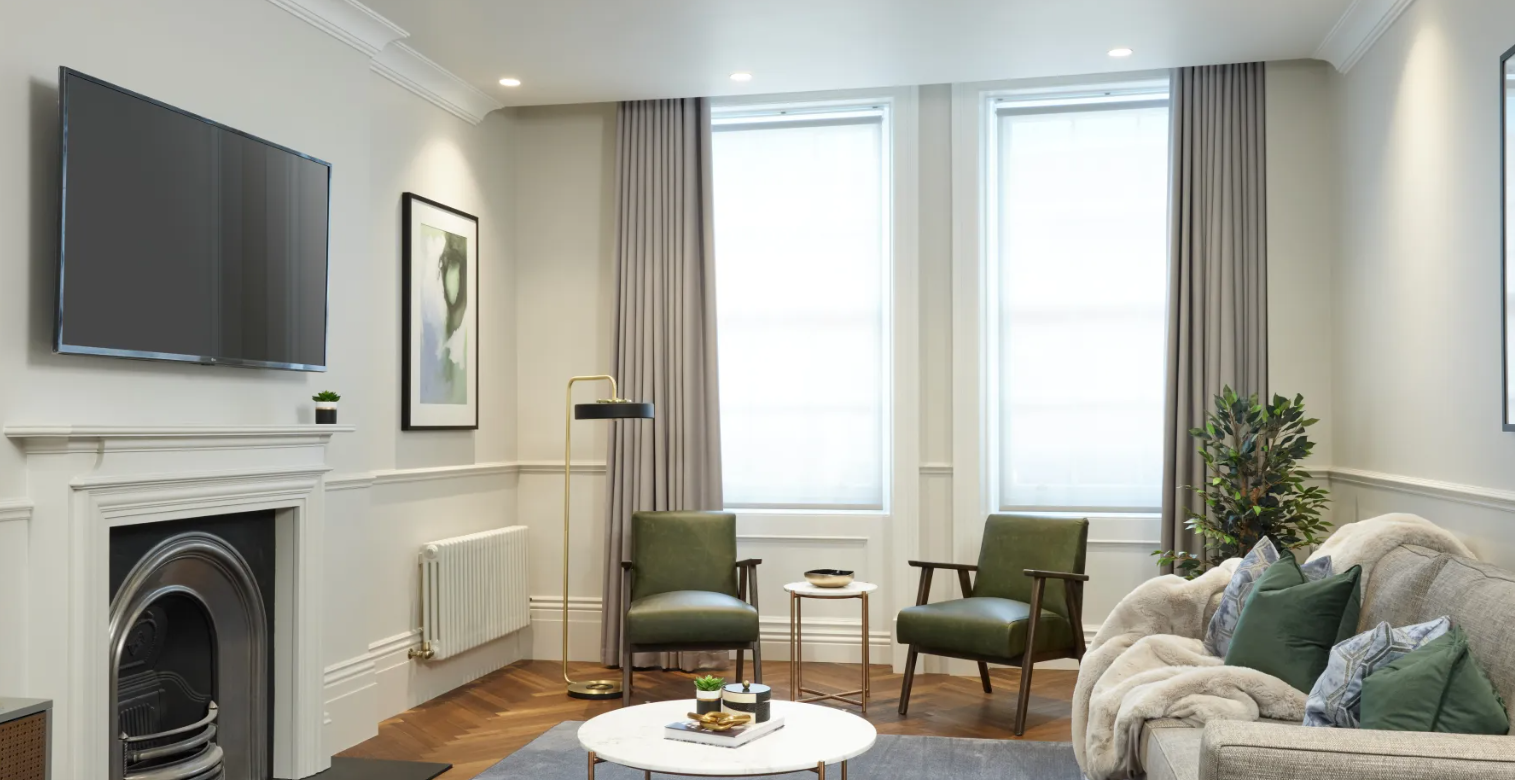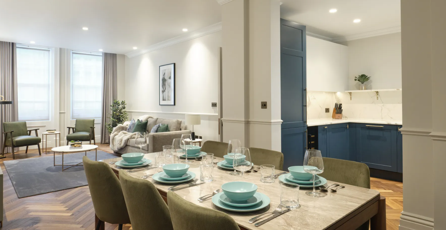 Boasting luxurious living spaces and unparalleled convenience, these exquisite one- and two-bedroom serviced apartments are set within a beautifully maintained period building. The property is perfectly located mere moments from Bond Street tube station and the famous shopping destination of Oxford Street. Step into the immaculate interiors, designed to an exceptional standard throughout. Expansive and airy, the apartments feature new herringbone timber flooring, high ceilings and large windows. Open plan living and dining areas combine luxury with supreme comfort. The sizable lounges are furnished with large sofas, coffee tables and smart TVs while the dining areas come perfectly equipped with everything you need. The custom-designed kitchens are complete with high-spec, integrated appliances, including a fridge/freezer, dishwasher, electric hob, oven, washer-dryer, as well as Nespresso coffee machines.
