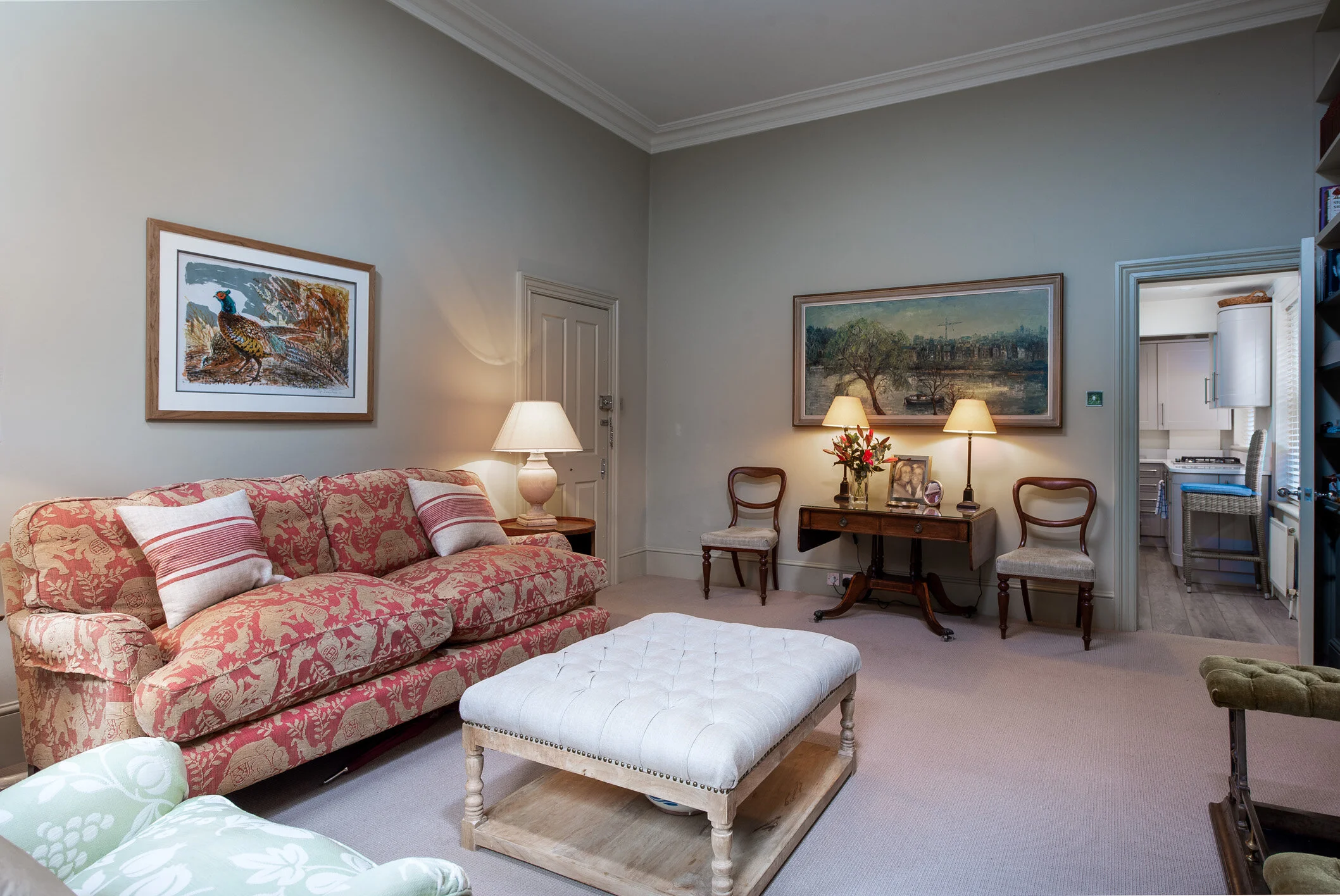 In a Georgian stucco fronted property in the heart of The Bolton’s Conservation area, Chelsea, this extremely light and comfortable, raised ground floor one-bedroom apartment has wonderful high ceilings and original window shutters. It is a very convenient base for a couple wishing to see London’s sights, while being in the heart of one if its best known “villages”.